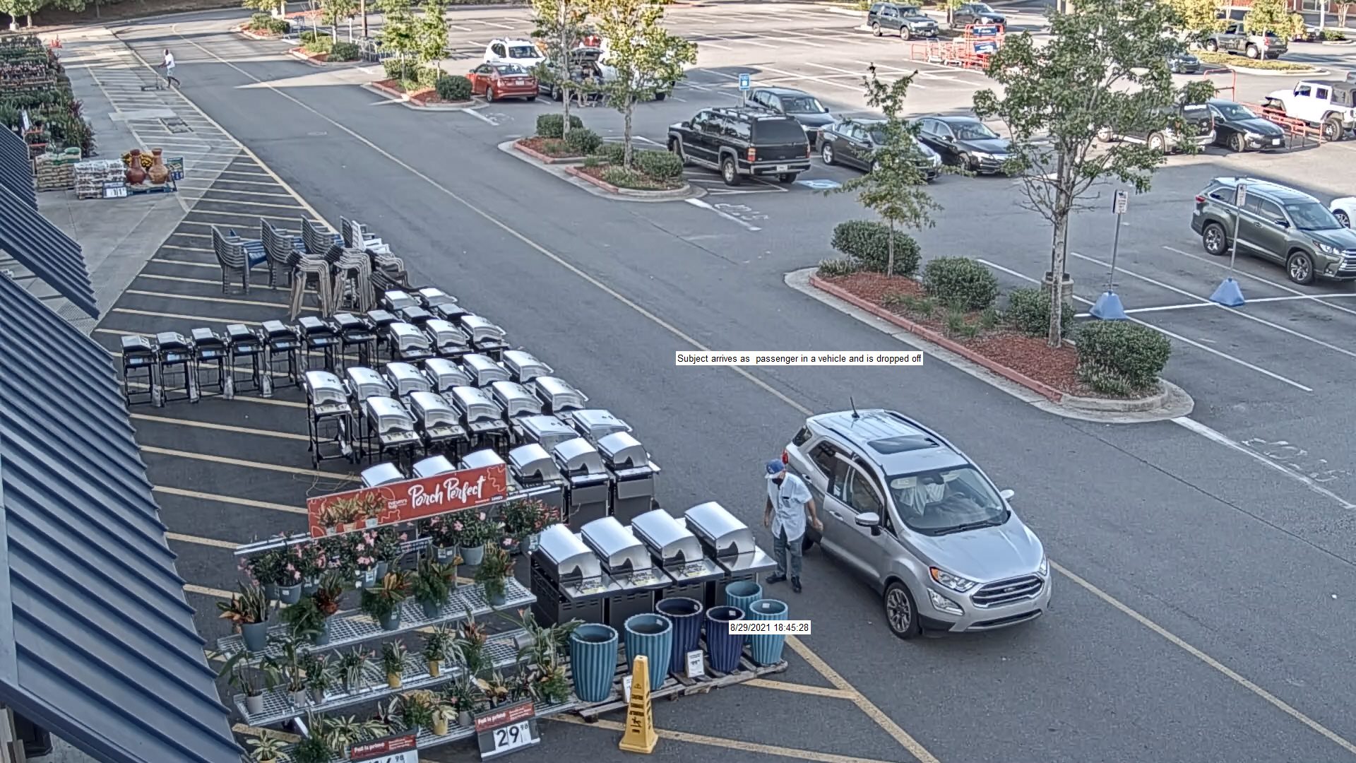 According to video footage, the suspect was driven to and from the location by a second unknown suspect in a gray SUV that was later determined to be a 2020 Ford Eco Sport with Georgia tag number CQG1793.