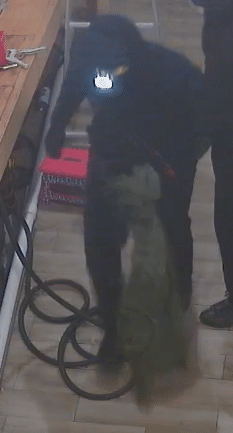 Both of the suspects were wearing masks with dark colored hoodies and black pants. Once of the suspects had a work light attached to his head.