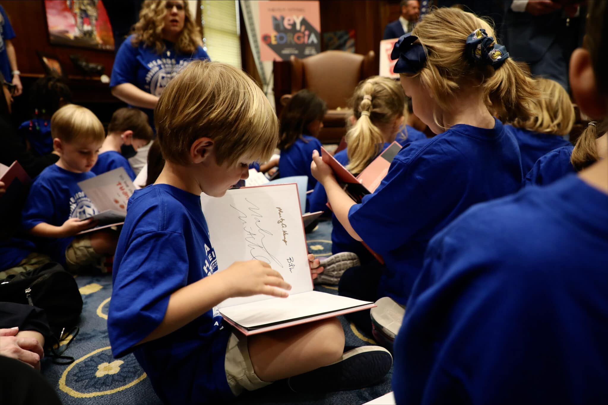 Two Georgia Pre-K classes from Heards Ferry Elementary School in Fulton County got a preview of the book this morning at the State Capitol as it was read personally by Governor Brian Kemp, the First Lady, and Mitchell.