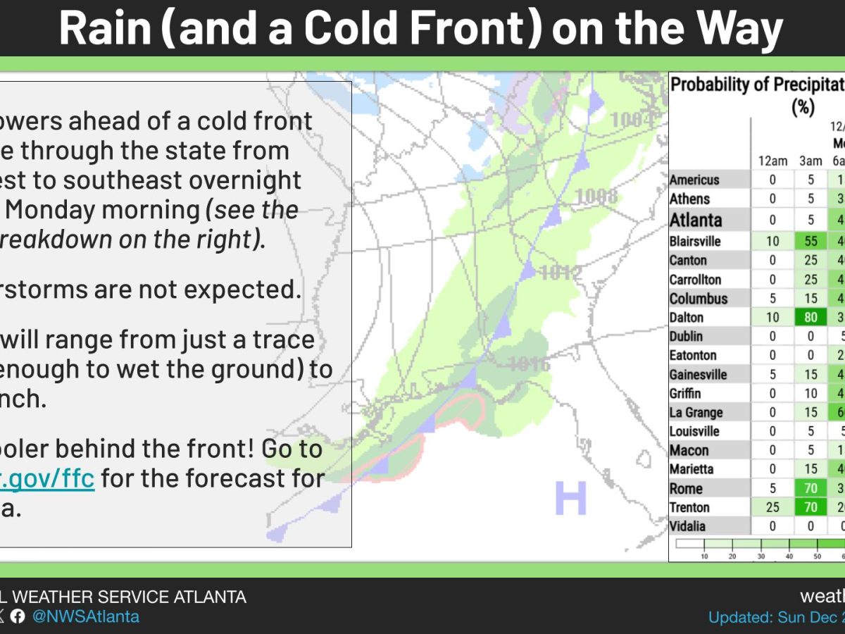 Rain showers are set to move across Georgia overnight into Monday morning as a cold front moves through the state, according to the National Weather Service in Atlanta. What’s Happening: Forecasters said rain showers will track from northwest to southeast overnight and into Monday morning ahead of a cold front. What’s Important: The National Weather Service said […]