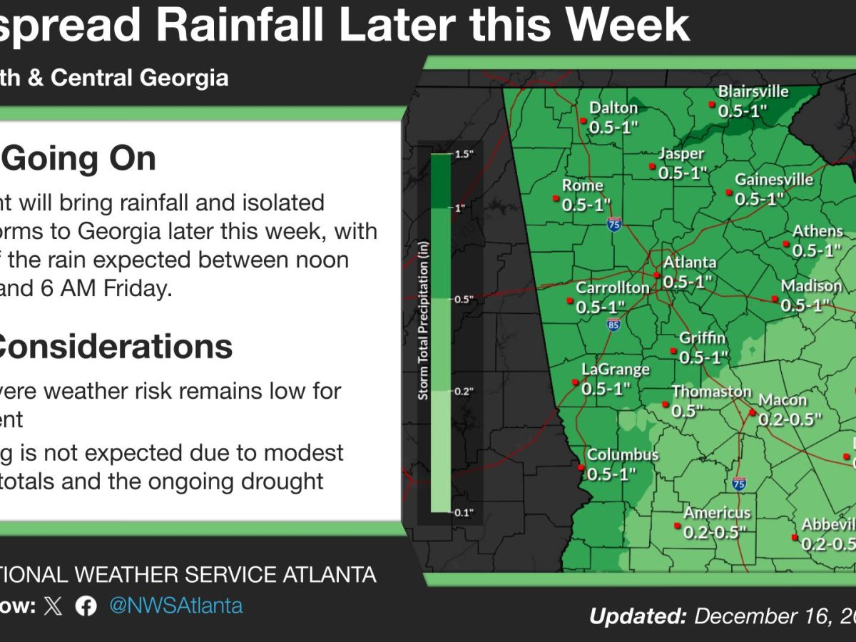 Rain is on the way for much of Georgia as a cold front moves through later this week. What’s Happening: The National Weather Service in Atlanta says the system will bring rainfall and isolated thunderstorms to north and central Georgia. Most of the rain is expected to fall between noon Thursday and 6 a.m. Friday. What’s […]