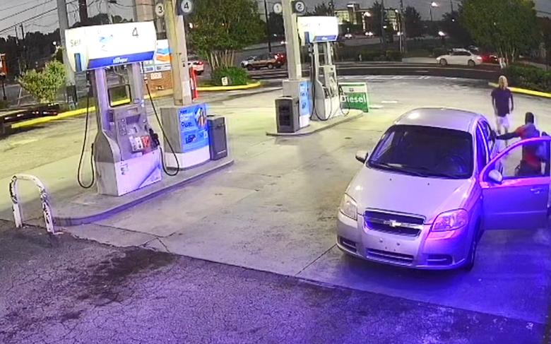 According to surveillance footage and witness statements, Riley had been pacing near an unoccupied Chevrolet Aveo at a gas station at 1200 Franklin Gateway before attacking the female owner when she returned to her vehicle. The struggle lasted approximately one minute before Edwards noticed and ran from across the street to help.