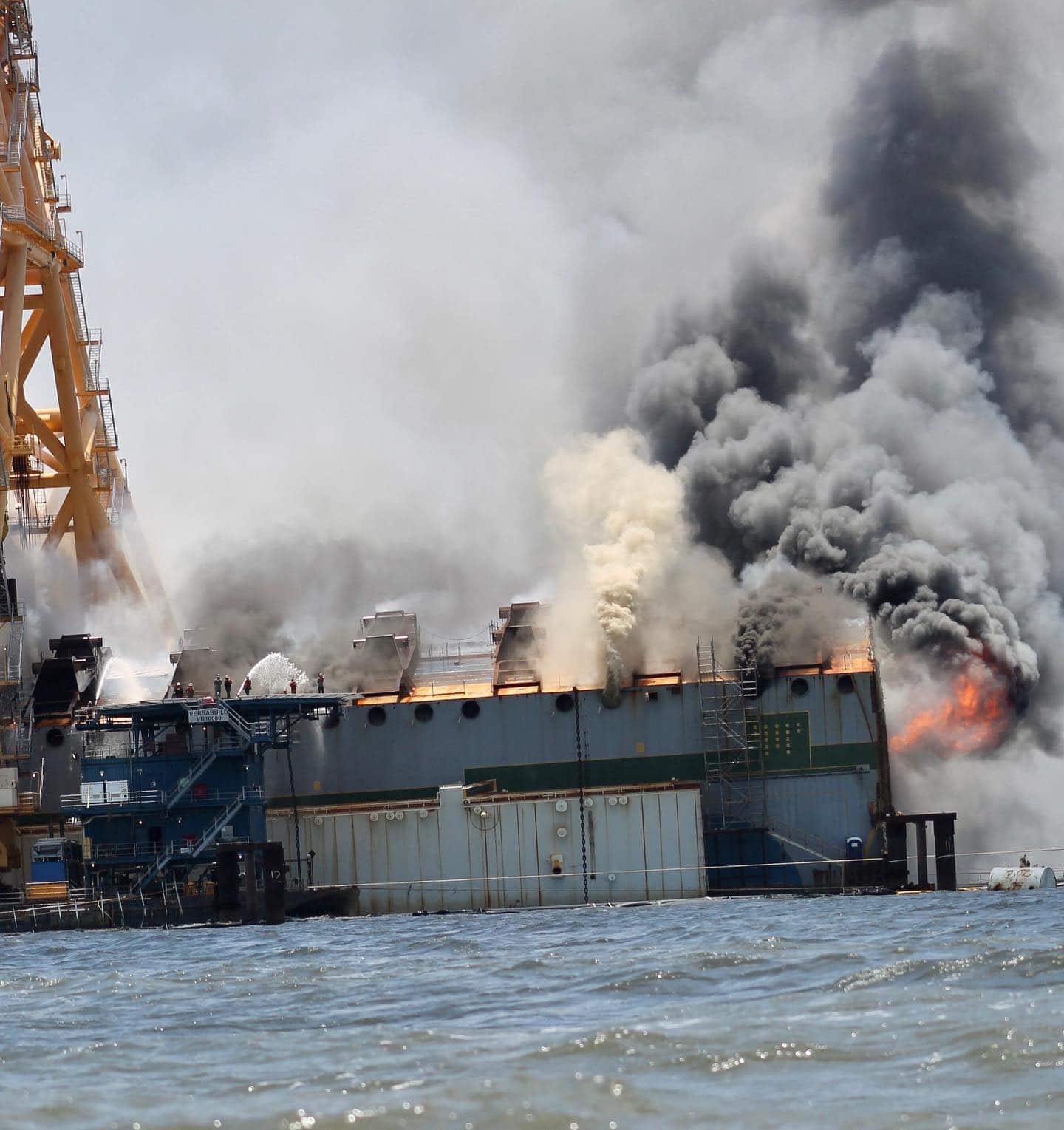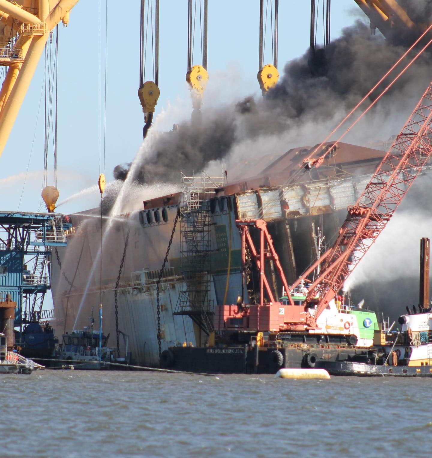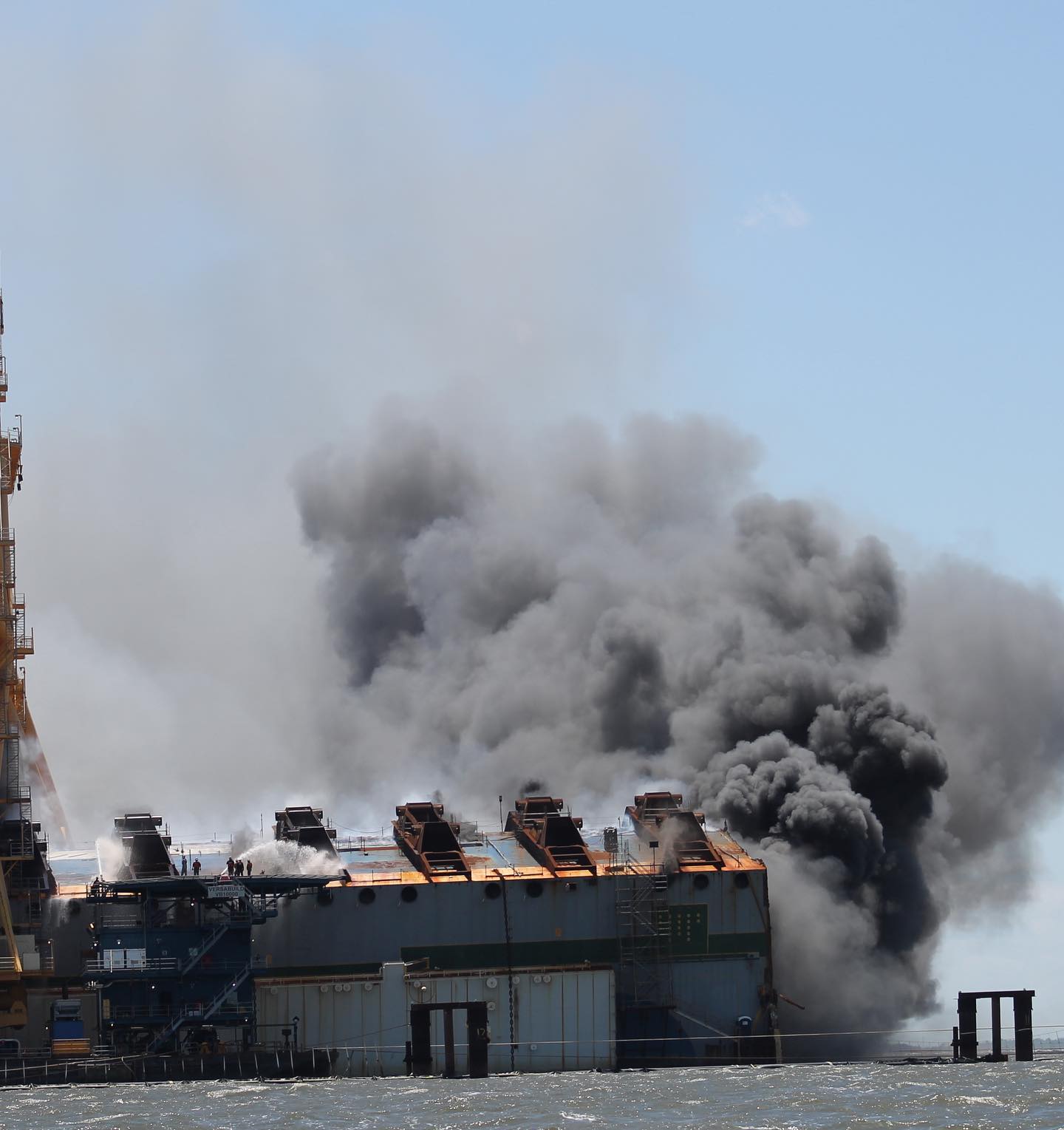 Black smoke billowed out of The Golden Ray on Friday and was being extinguished by crews Saturday morning.
