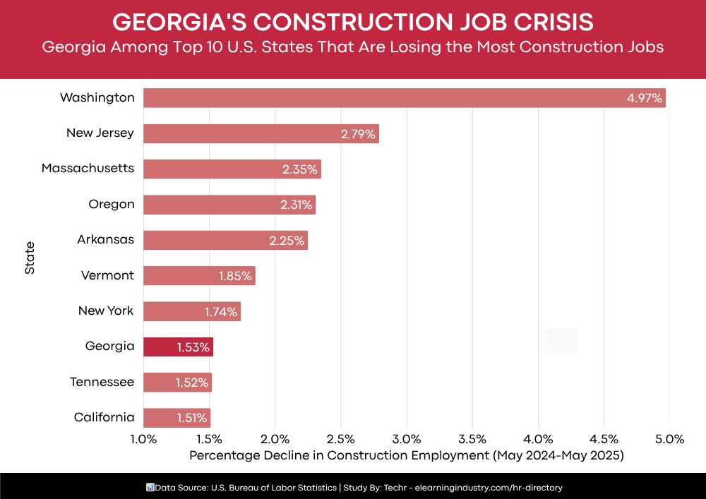 Georgia lost 3,500 construction jobs between May 2024 and May 2025, placing it among the top 10 states experiencing the steepest declines in the sector. What It Means For You: If you work in construction or related industries in Georgia, you may face a tighter job market and potentially lower wages as employers adjust to […]