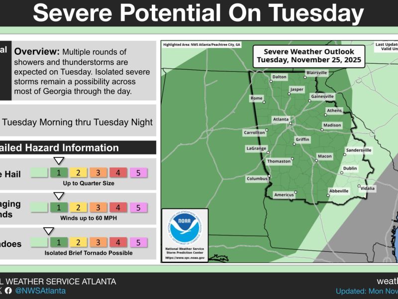 Posted inWeather Severe Storms Possible Across Georgia Today by B.T. ClarkNovember 25, 2025November 25, 2025