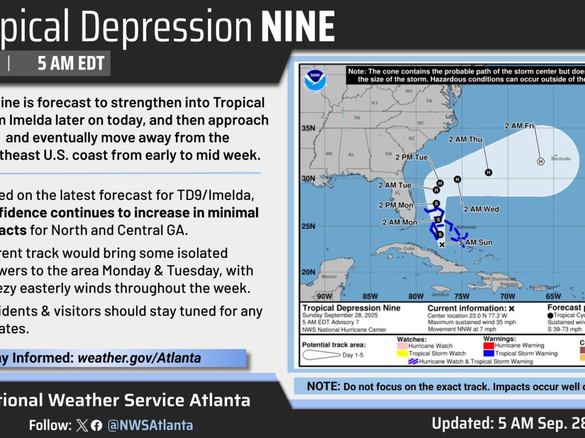 The latest forecast shows Imelda moving eastward, meaning Georgia residents can expect minimal weather disruptions this week. What It Means For You: You’ll experience a warm, dry Sunday with temperatures in the mid to upper 80s, followed by increased cloud cover and possible light rain showers on Monday as Imelda moves off Florida’s east coast. […]