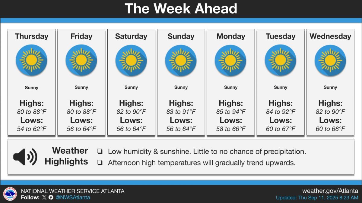 If you’ve been enjoying the slightly cooler weather, time to soak it up while you can. Georgia’s dry spell isn’t going anywhere, and temperatures are climbing back into the 90s by early next week.