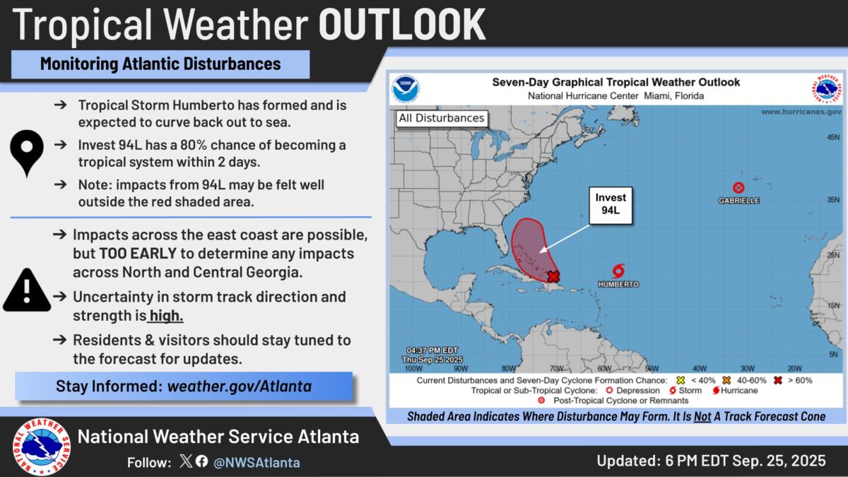 Between The Lines: Meteorologists say there is high uncertainty about the storm’s eventual track and strength. The National Weather Service in Peachtree City notes it’s too early to determine any impacts across Georgia.