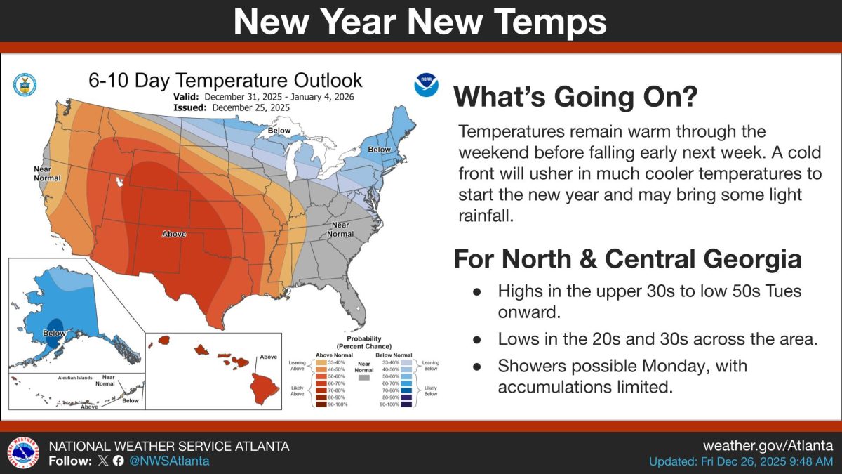 How This Affects Real People: Georgians who have enjoyed the warm weather will need to prepare for cooler temperatures and possible rain as they ring in the new year.